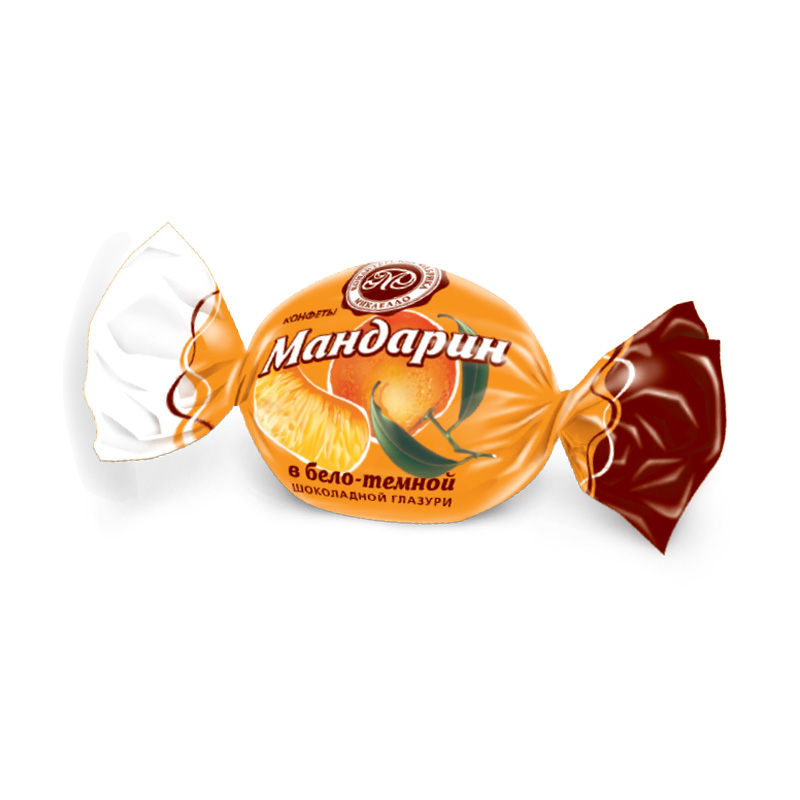 Мандарин в бело-темной шоколадной глазури
